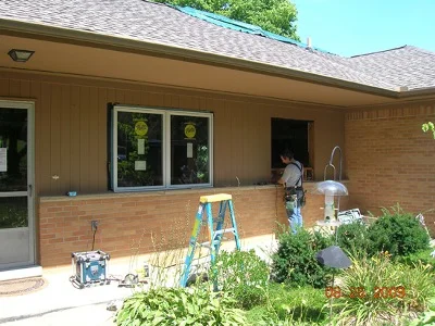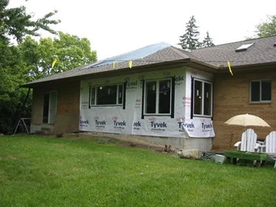 The new windows have been installed. A siding glass door will be put in later to the left side.