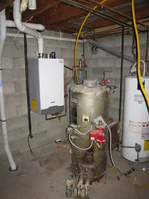 The new boiler has been installed (white box on the wall). It is both smaller and