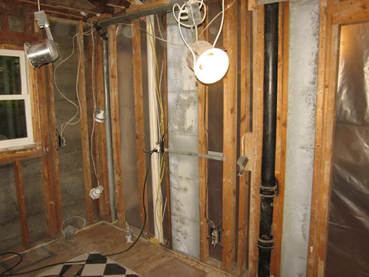 This is the key wall of the project. As you can see, there is plumbing, ductwork, and