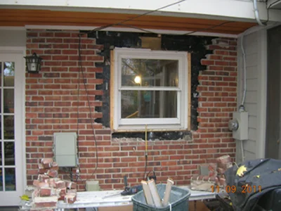 The support wall has been removed, leaving only the face brick behind to be demoed later.
