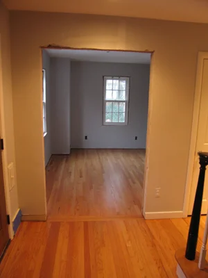 We will open up this wall to create a large arched opening into the study here at the front door.