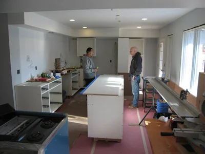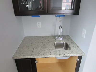 Cabinetry, counter, and plumbing fixtures were salvaged from the existing kitchen.