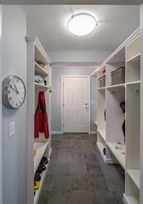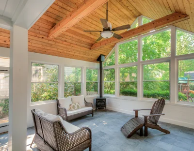 When finished on the main project, the clients had us convert their screened porch into a 3-season room. New windows, heated tile floor, and a fresh coat of paint increased