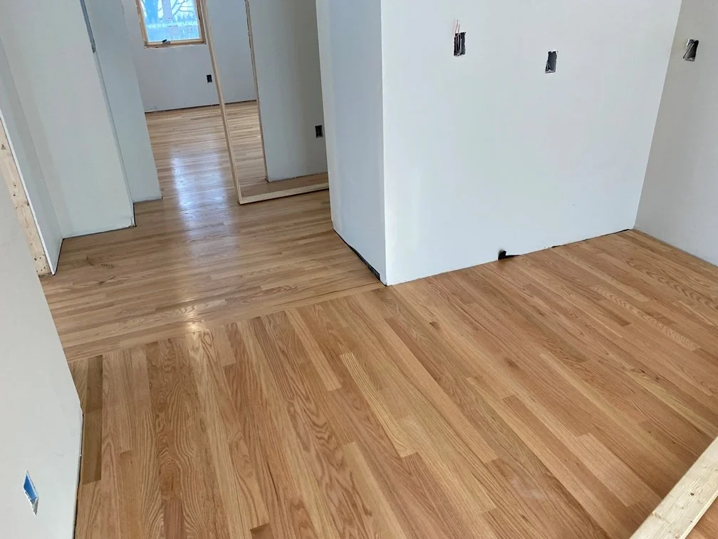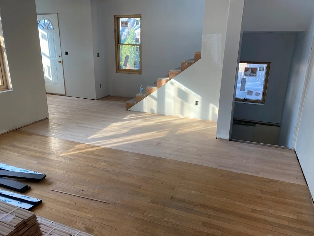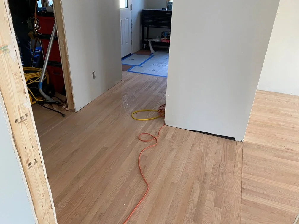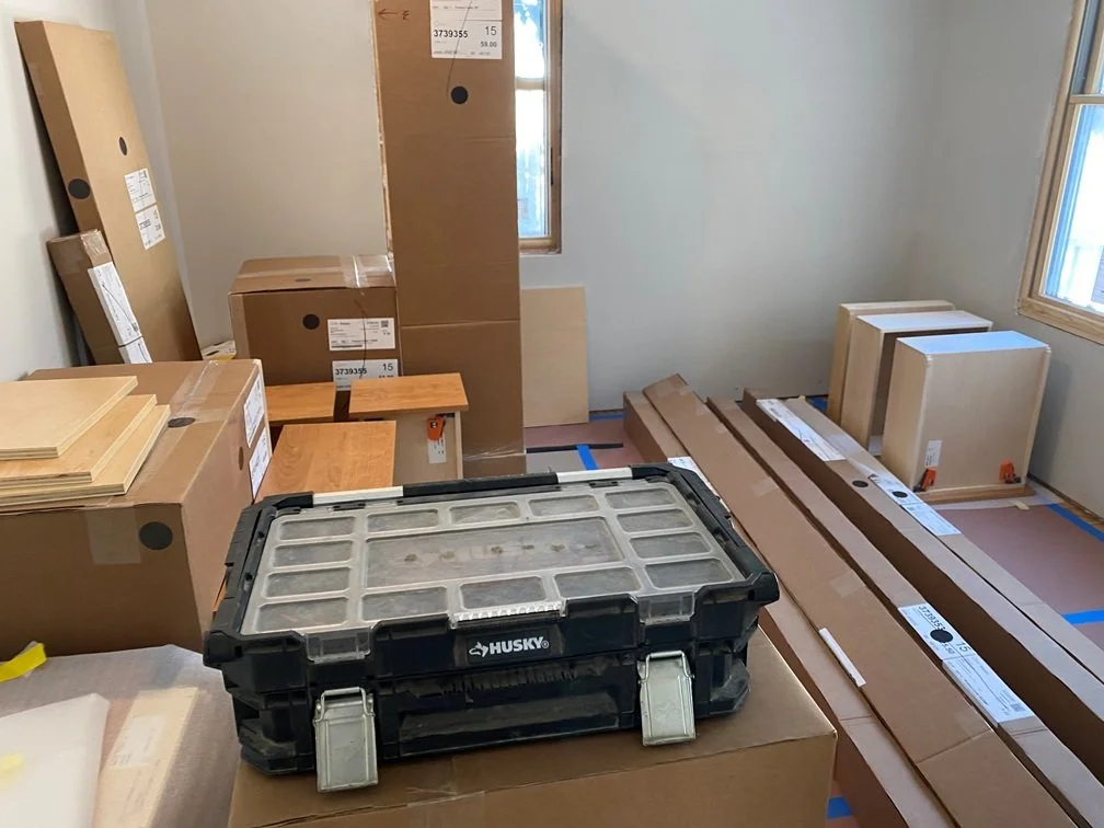 Now that the floors are stained throughout, the Rochman Design Build team is ready to lay out floor protection and outline for the kitchen cabinetry.