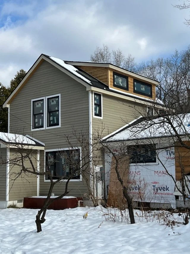 And low maintenance Hardie (fiber cement) siding is almost done being installed on the exterior.