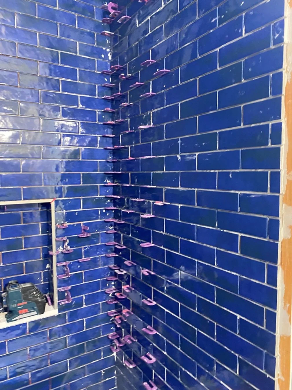 This vibrant Bejma Azure tile is in the 1st floor bathroom.