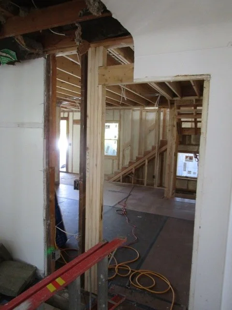 A cool shot looking into the newly reframed 1st floor structure that was built to support the addition of a 2nd floor.