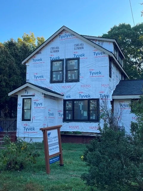 The owners of this 1920s 1.5 story small farmhouse came to Rochman Design Build with a need for a major home remodel and addition. The new full 2nd story addition will have a 2 bed 1-bathroom addition that will include a primary suite with gorgeous vaulted ceilings and lots of windows for natural light. The 1st floor remodel will include a new mudroom, bathroom and kitchen. The floors will be connected by a new stair tower. Please follow this current work blog to see the transformation.