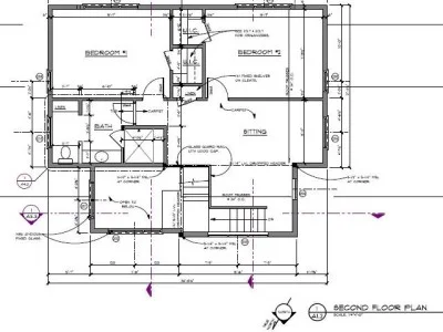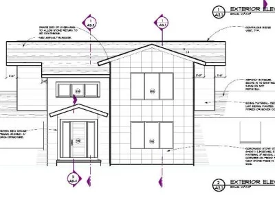 Detailed plans show spatial relationships between rooms, and describe the construction methods and materials intended for the project.