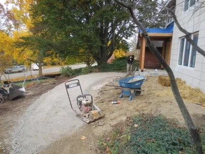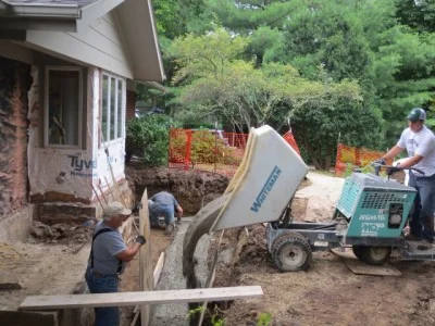 This cool little truck brings the concrete from the cement mixer at the street, right to where it’s needed.
