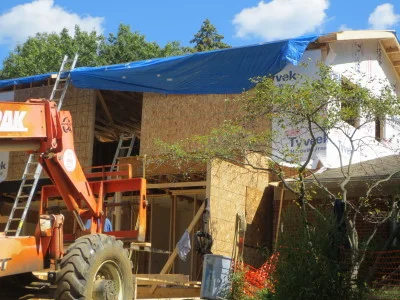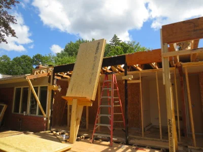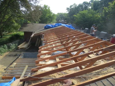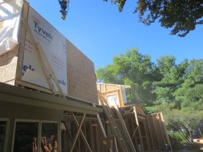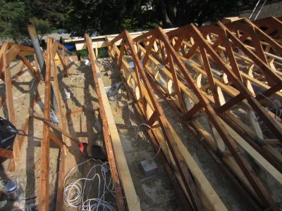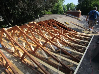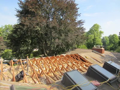 Meanwhile, up on the roof, the mechanical and electrical have been removed enough to allow the framing to continue. And only a few surprises. Life is Good.