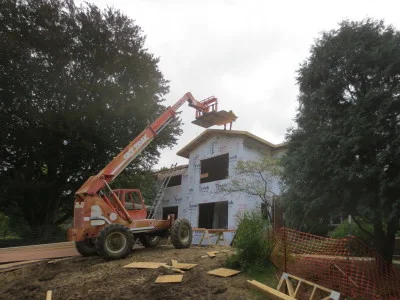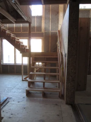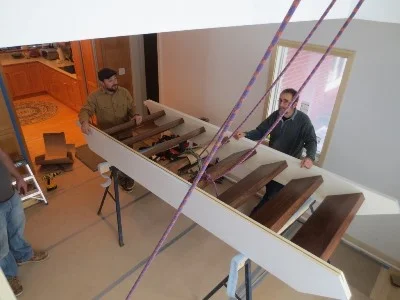 The Rochman Design Build carpenters are getting themselves ready for the install of the stairs.