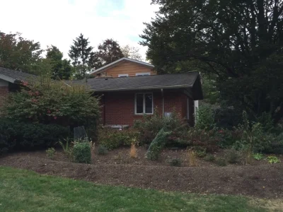 …and the side yard... The plant material in the foreground is part of a new rain-garden.
