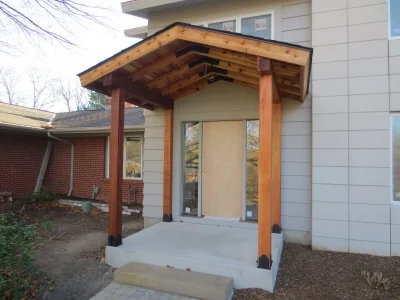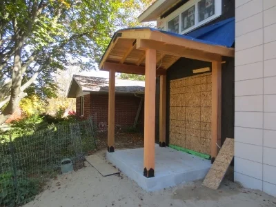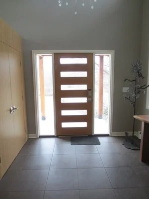 The old front entry on the left, has been replaced by the new front entry on the right;