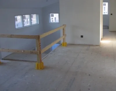 These temporary stairs will be replaced with a new floating staircase. We are waiting as long as we can to install the new stairs, so they are protected from being damaged.