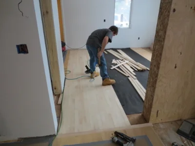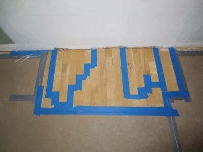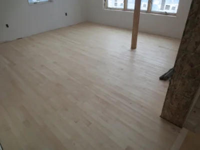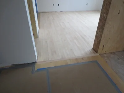 Once the new maple floor is finished, it will blend beautifully with the old.
