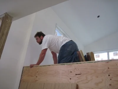 Jay, one of our lead carpenters, is wrapping his head around the install