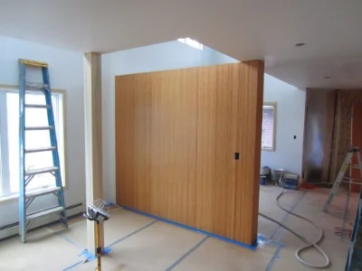 Final touches are happening everywhere. Secret doors connect two spaces from inside the closets. There are fun spaces for everyone at this remodel.