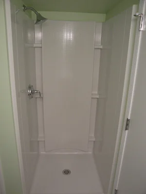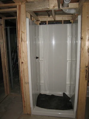 The fiberglass shower stall. Other plumbing