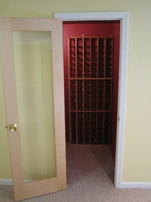 The wine cellar with a vibrant paint color.