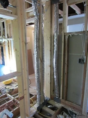 Insulated ducts for exhaust fans are installed and vented to the exterior.
