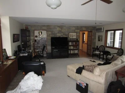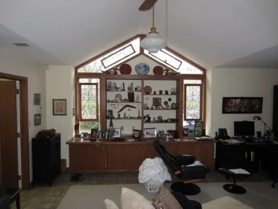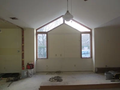The family room will be reworked, creating space here for a fireplace and TV.