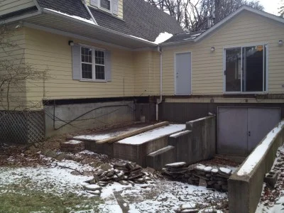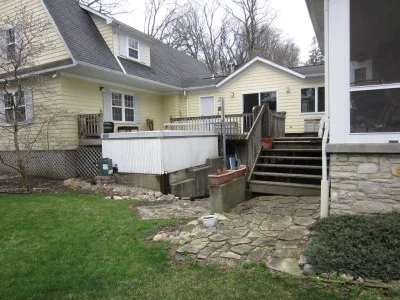 Outside, this existing wood deck is being removed. We will replace