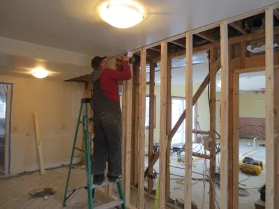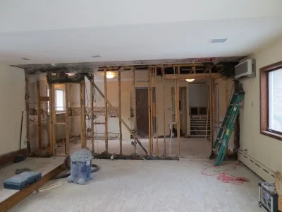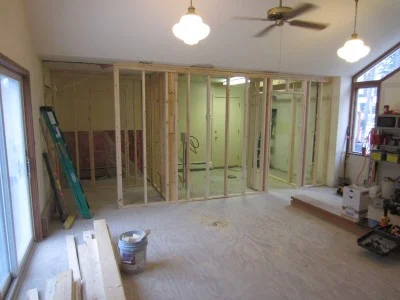 put up this temporary shoring wall in the kitchen area.