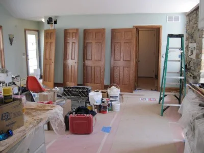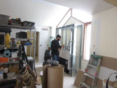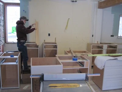 Finishing up cabinets near the fireplace and in the laundry room.