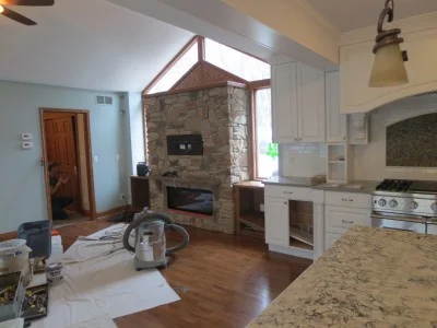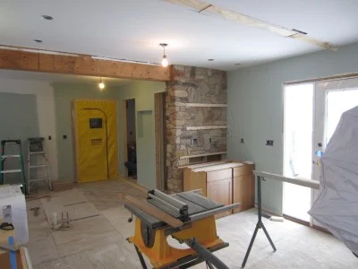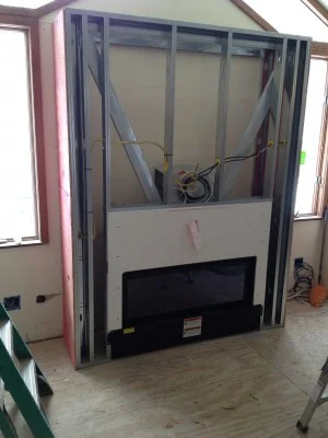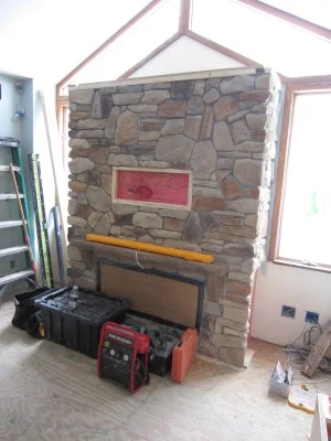 New family room fireplace is being installed.
