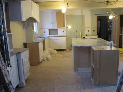 Bases are all in place, and the granite countertop has gone in.