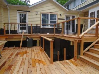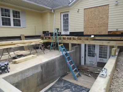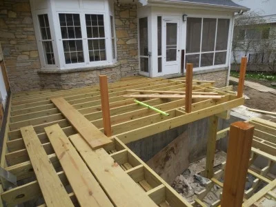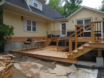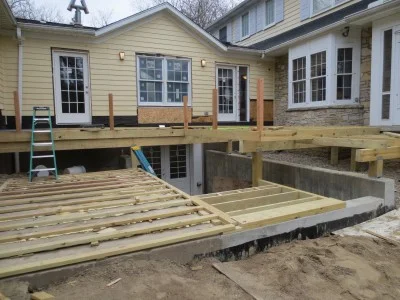On the exterior, the new deck is being constructed.