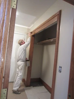 Our painter is staining the new trim in the laundry room.