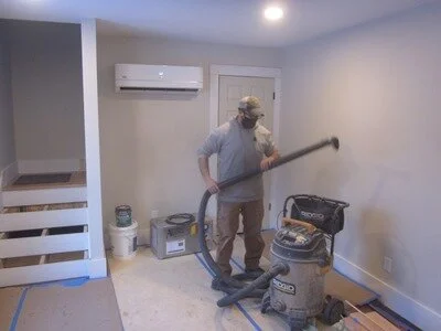 The HVAC contractor installs the mini split unit for the new heating and cooling system.