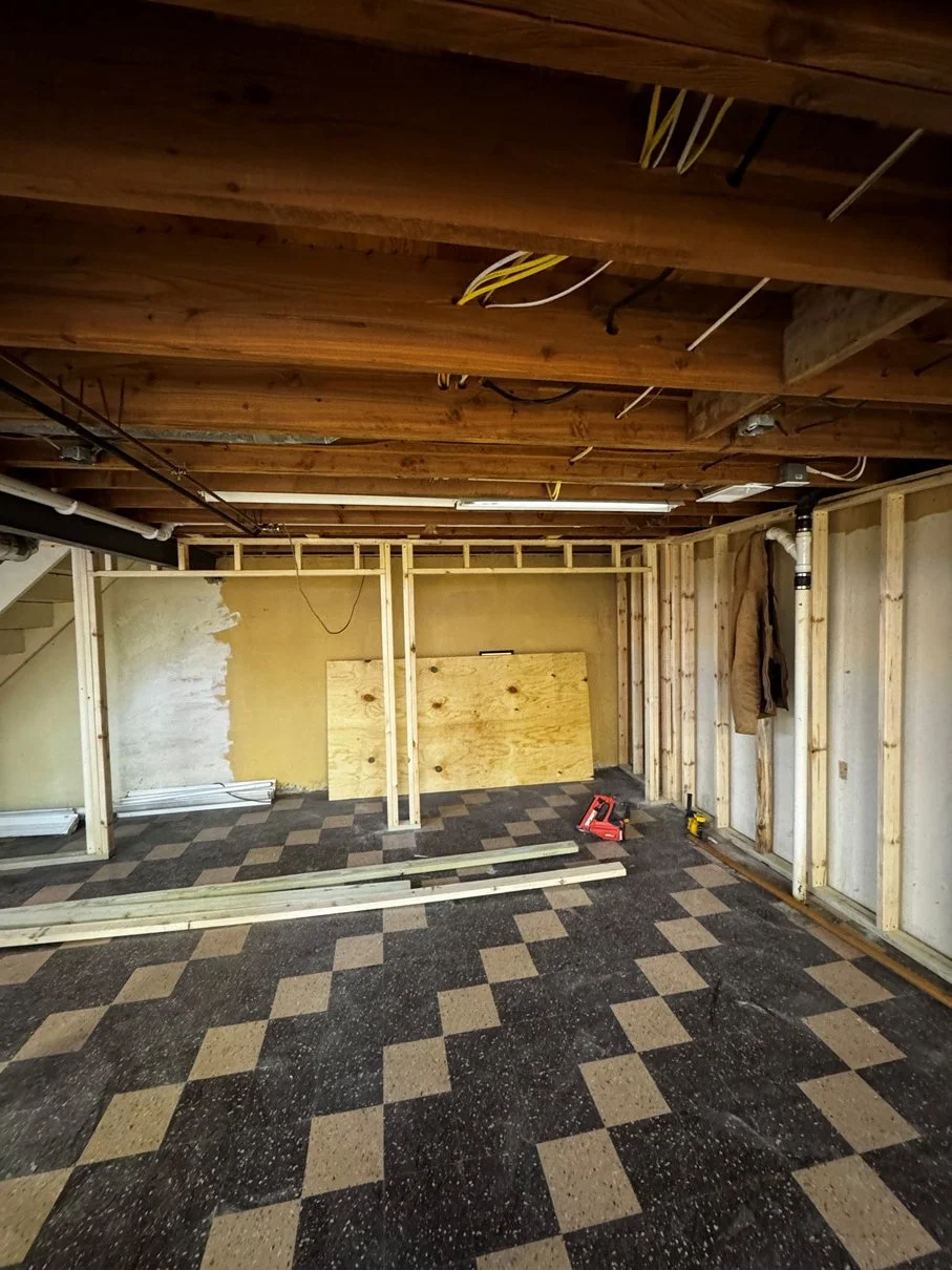 In the basement, the focus is on creating new living space by transforming an open area into a structured environment. Once Nick is done removing the old materials to make room for the new floor plan, framing is now in progress. These new walls define the future rooms and hallways, turning an open basement into a functional part of the home's footprint.
