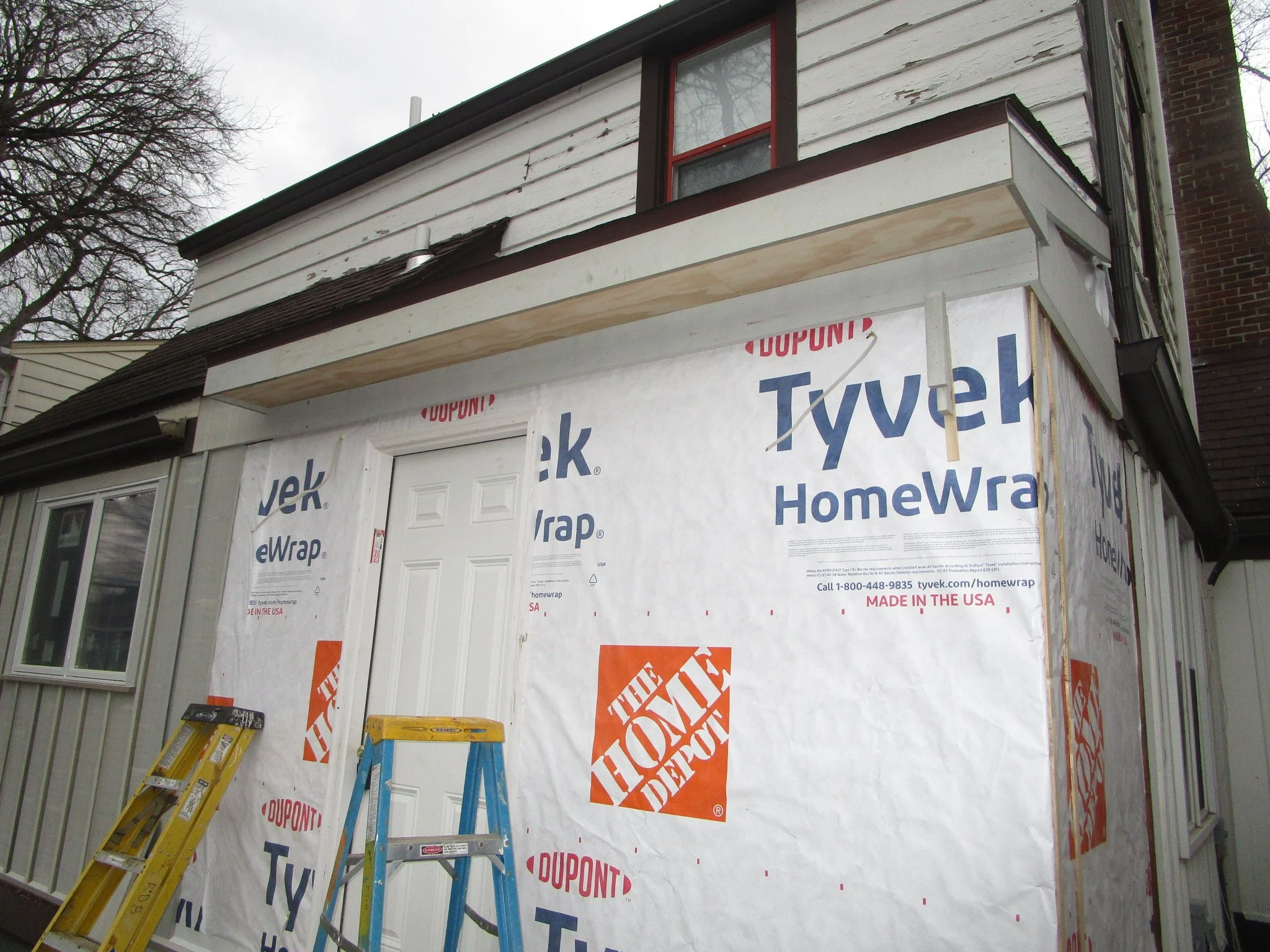 A hole was cut in the wall to get the beam in. In case you’re wondering… the beam weighs 935 lbs