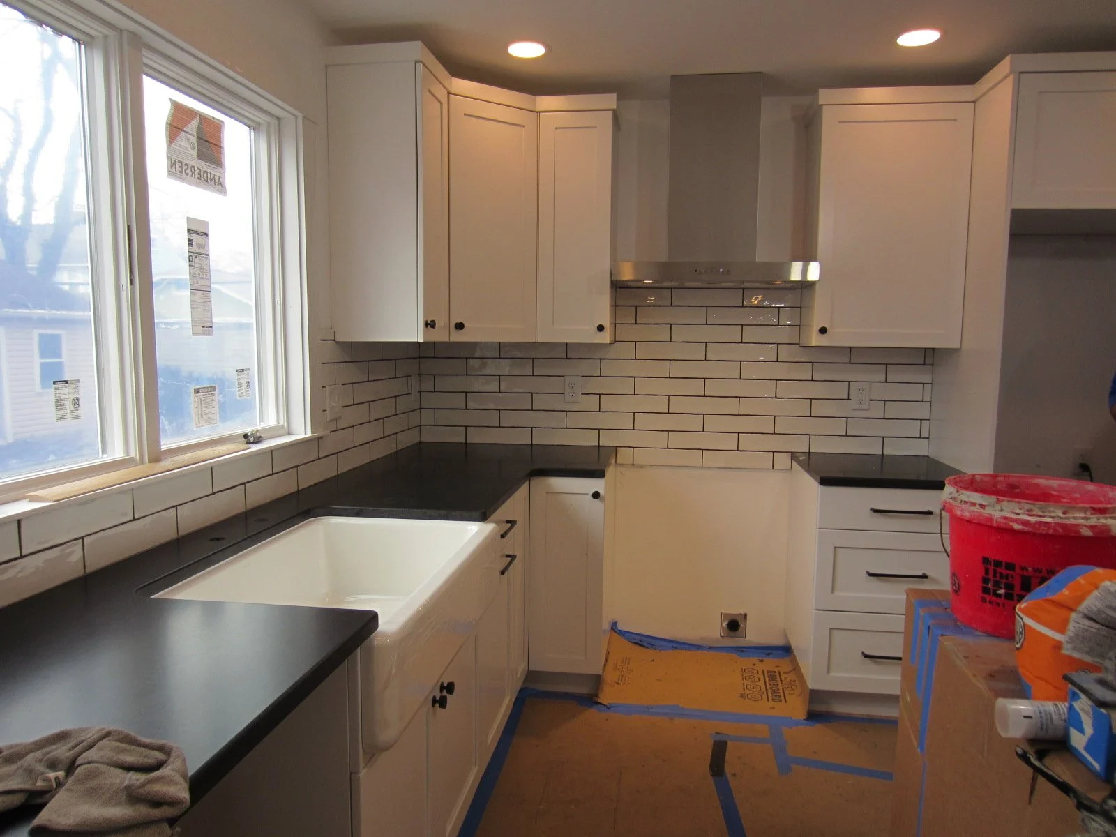Cabinetry is done, the countertop has been installed as was the backsplash.