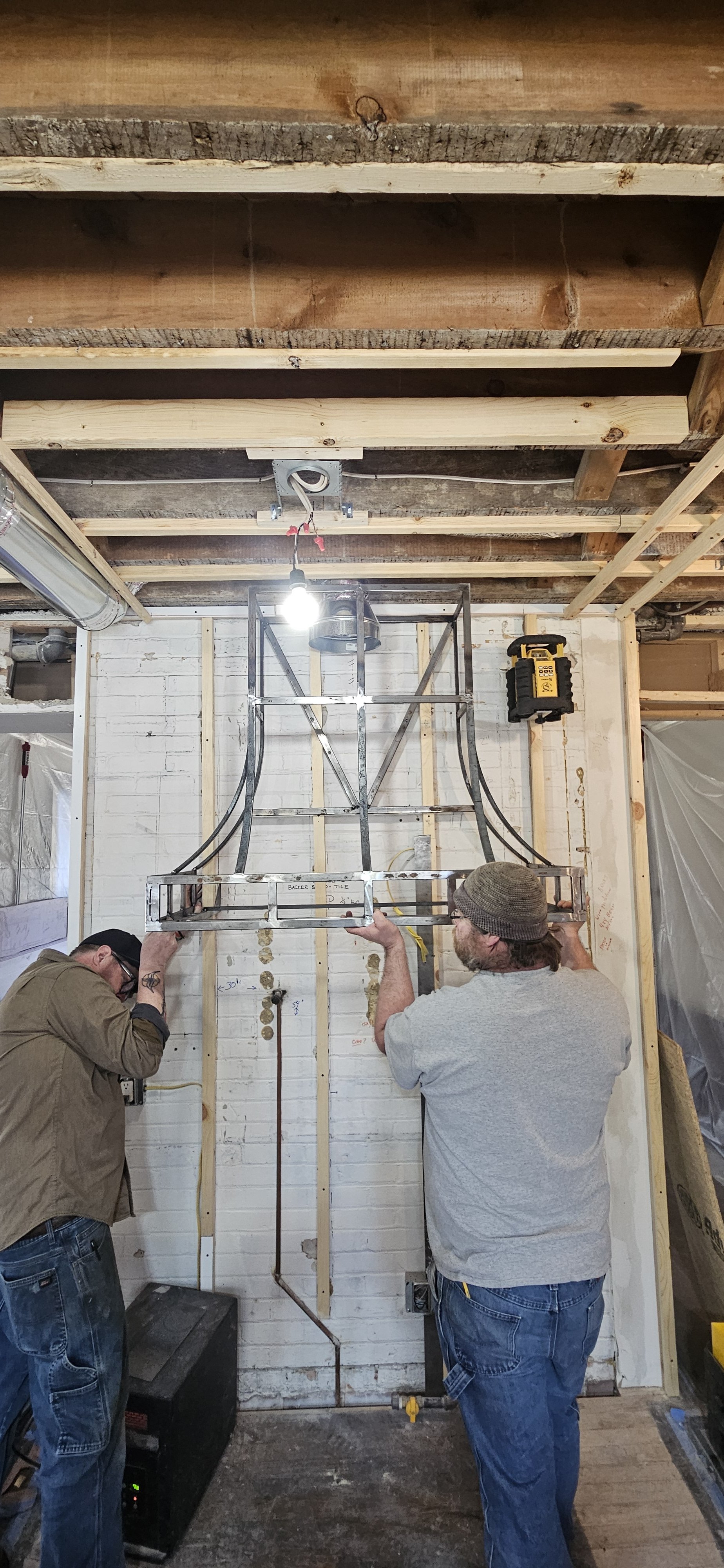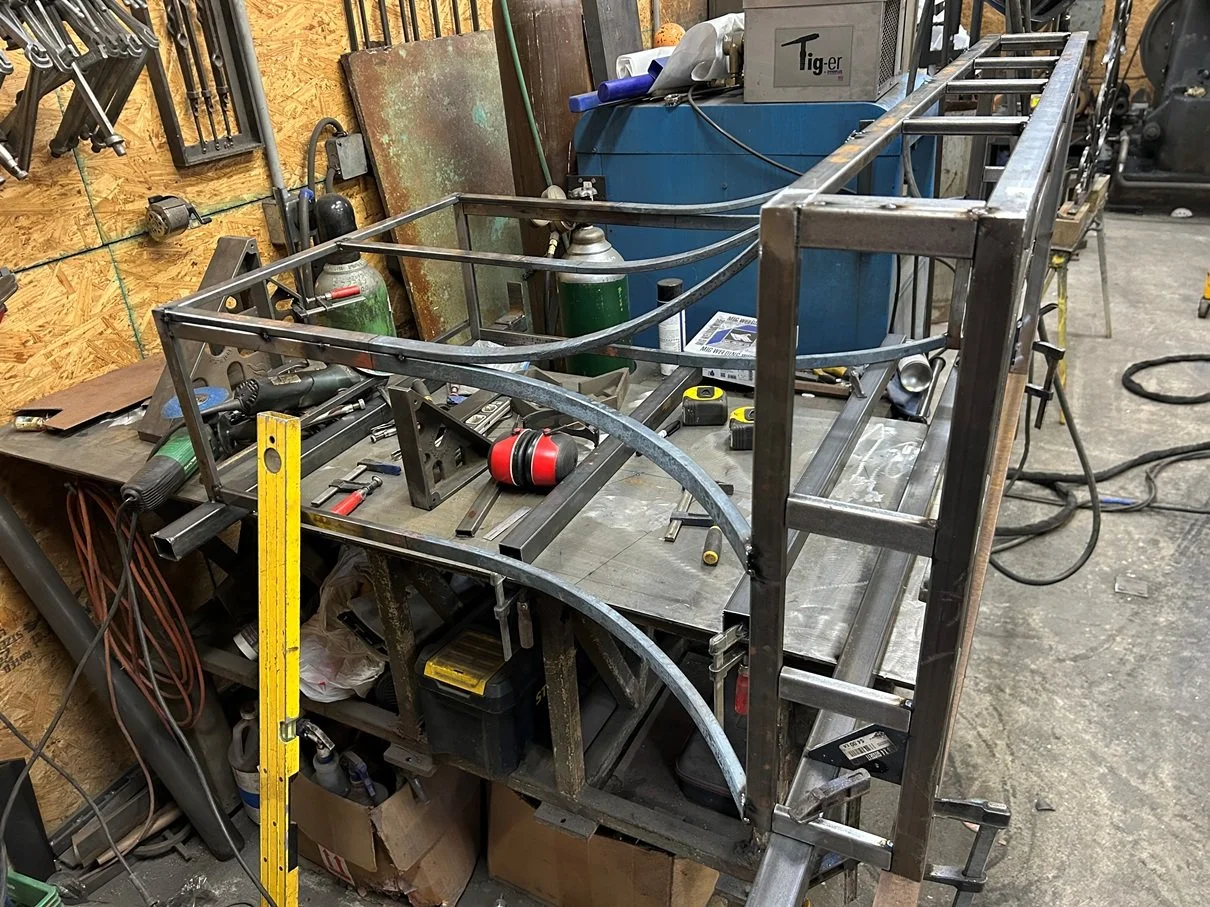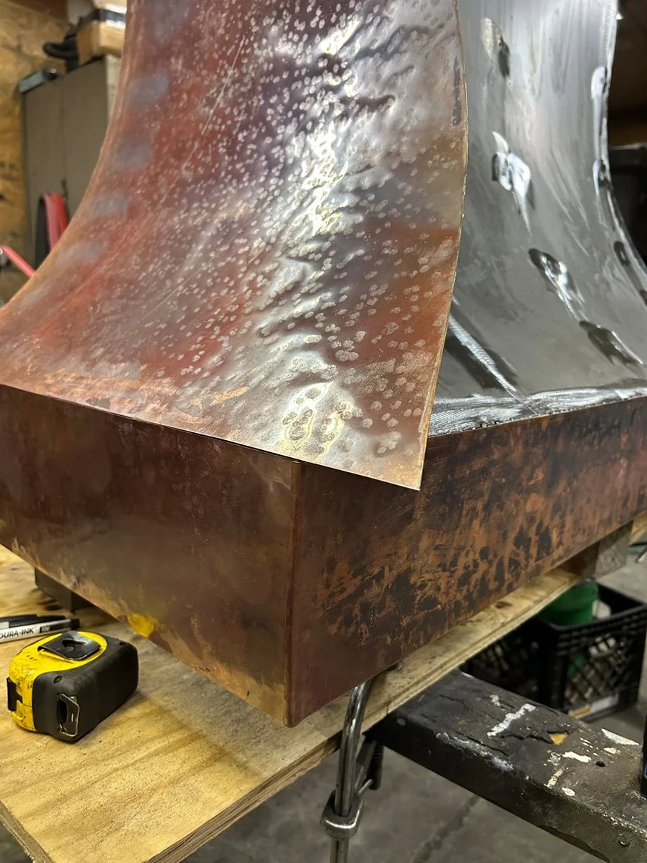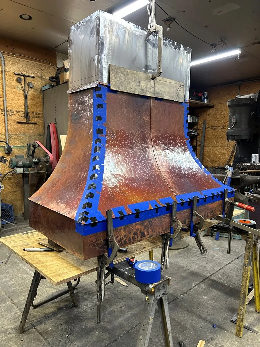 Off site, the gorgeous custom frame for the stunning hood is being crafted by our metal fabricator.