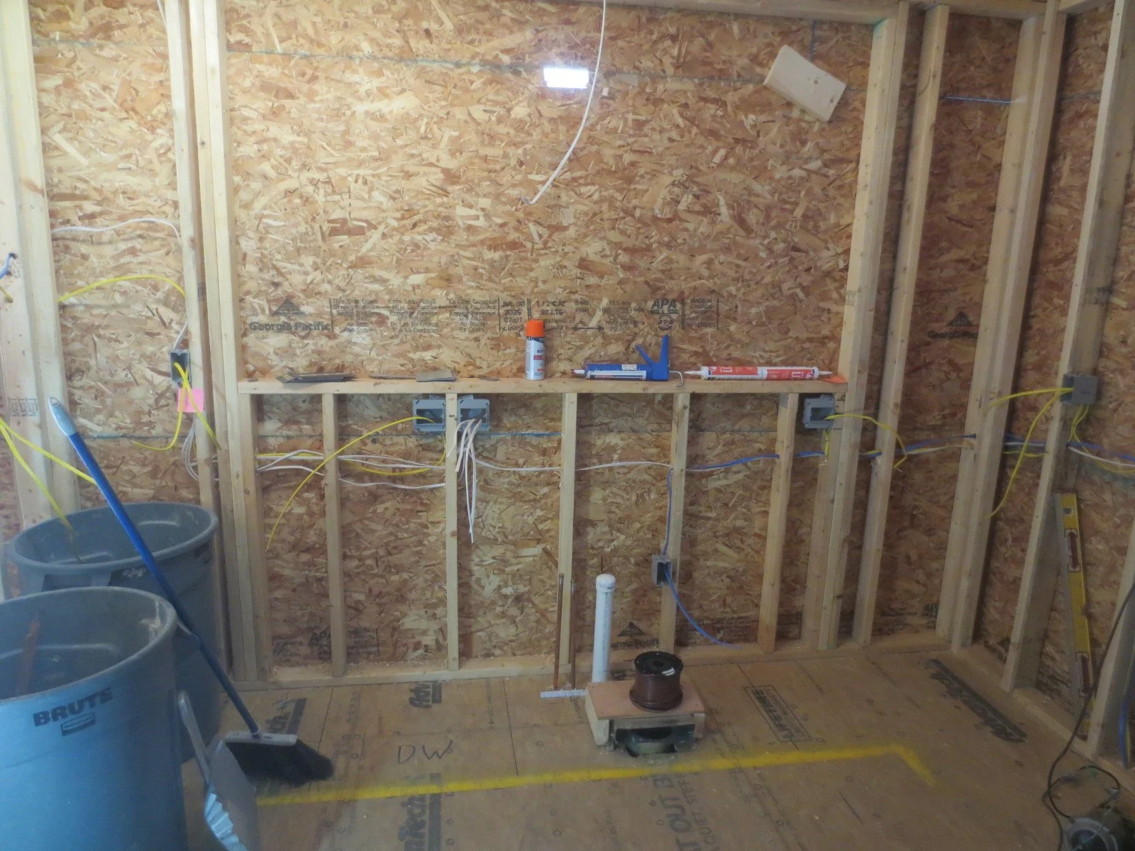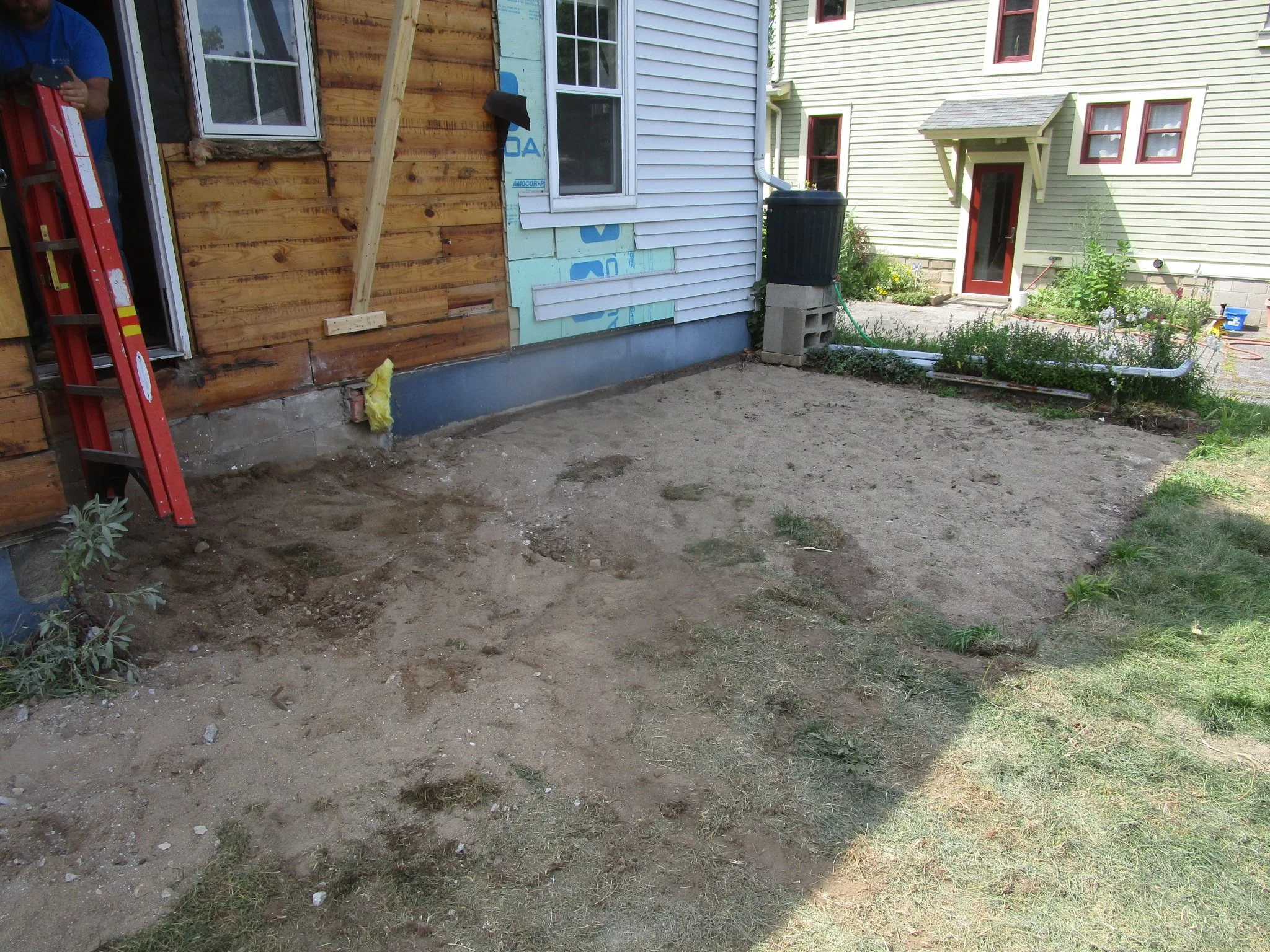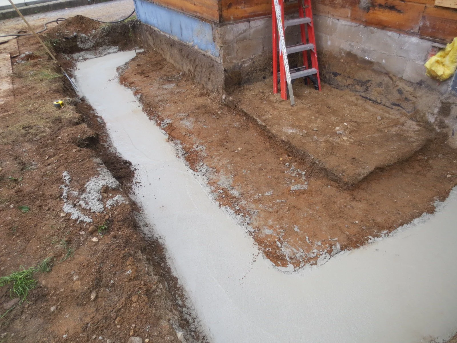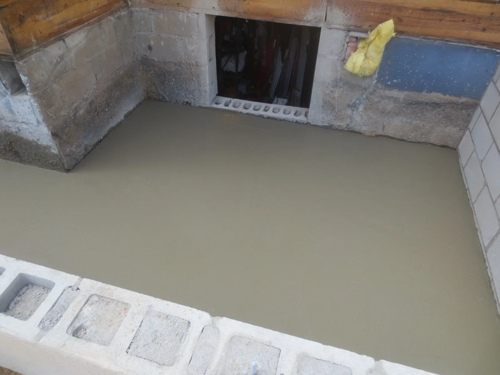 A concrete floor is poured for the new crawl space beneath the future kitchen.