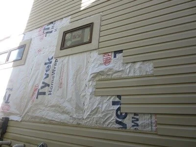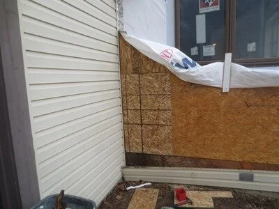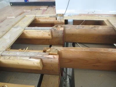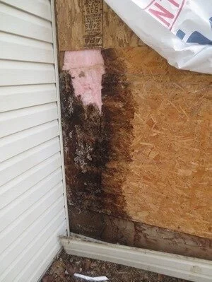 During construction, we uncovered a previous flashing problem at the old windows that sent water back to the sheathing. This rotten wood needed to be removed.