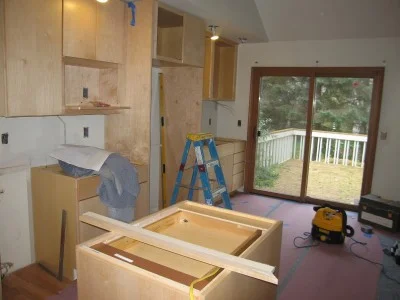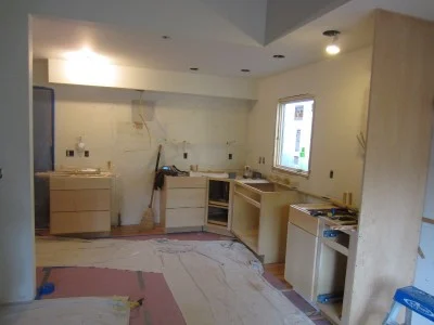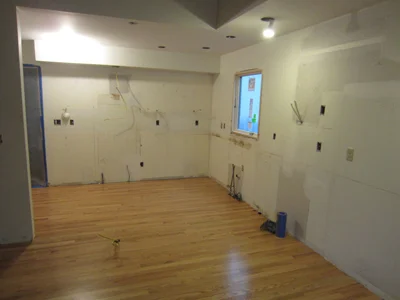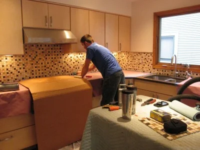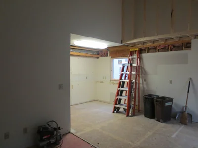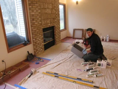 At the same time, new tile is being installed for the hearth at the fireplace.