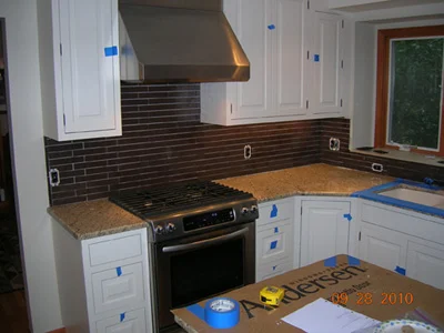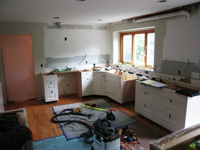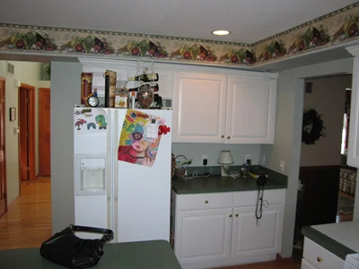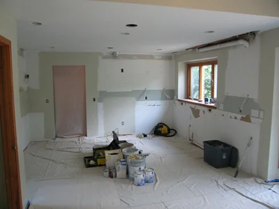 The kitchen is being painted. Areas without new paint will be covered by the cabinets,