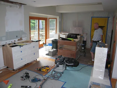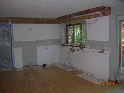 Demolition is progressing, with all of the kitchen cabinets having been removed.