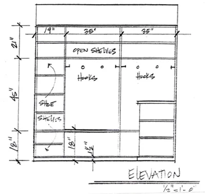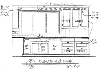 These elevations show the new cabinet layout, adding more drawers for better storage.