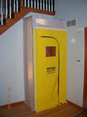 Dust protection in the tall front entry, a small plastic box out with a zippered door.