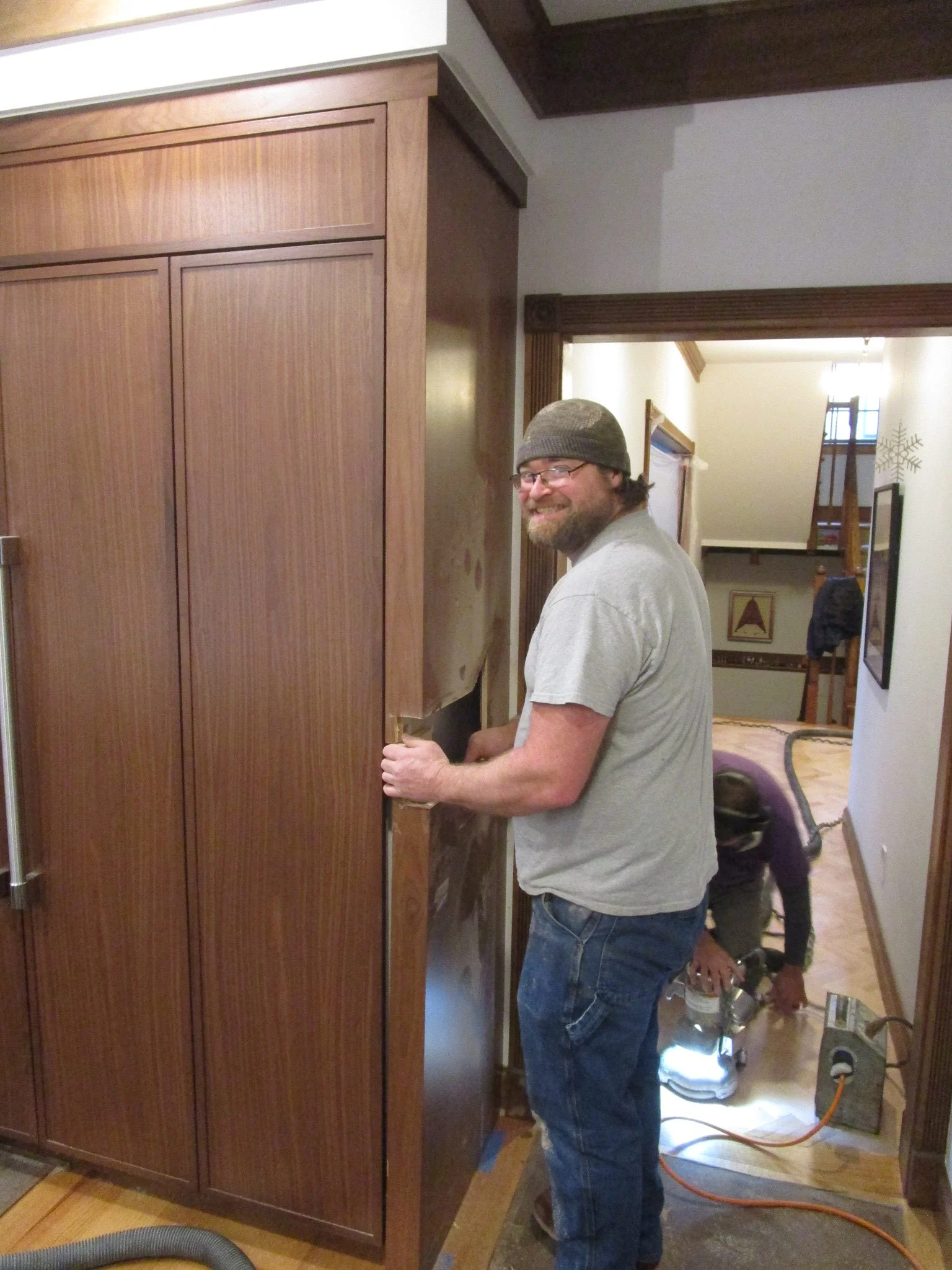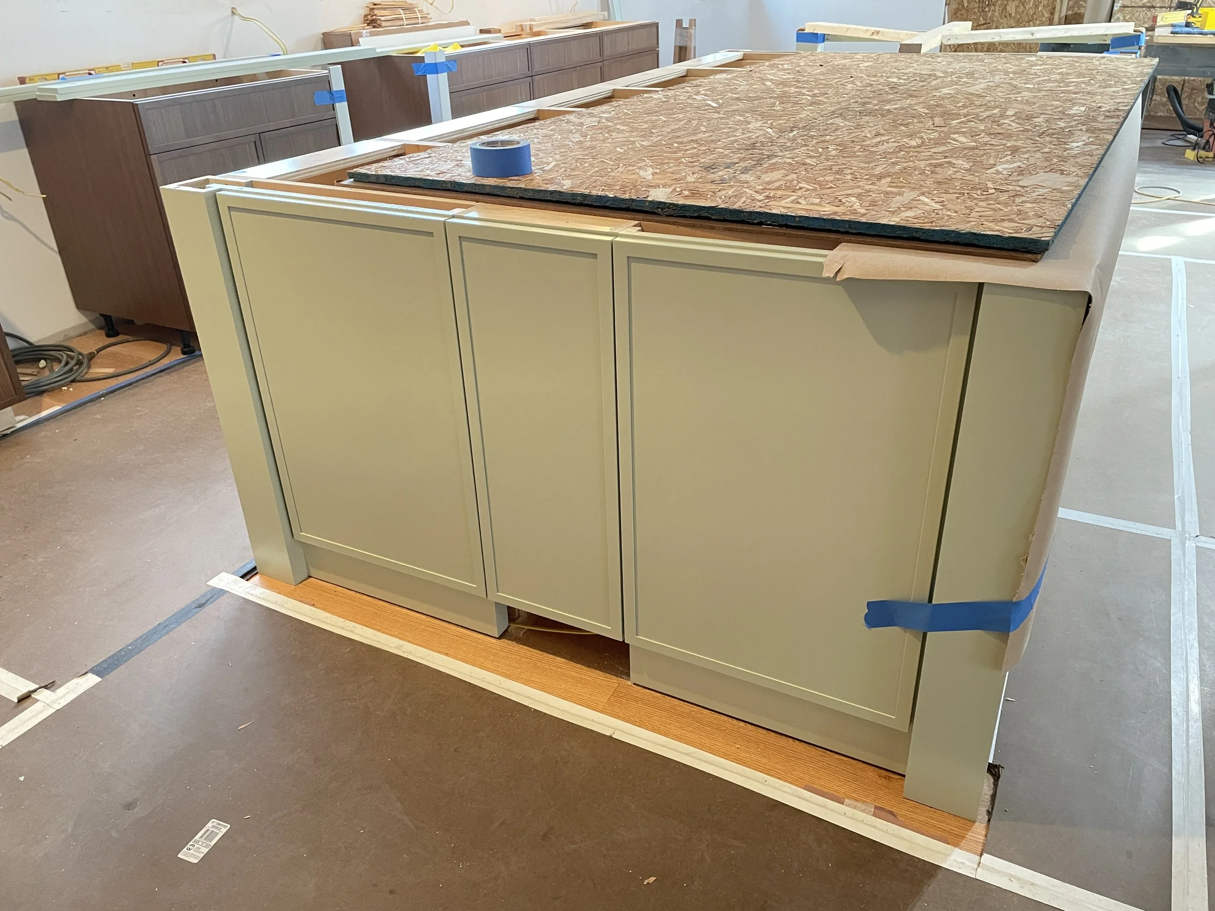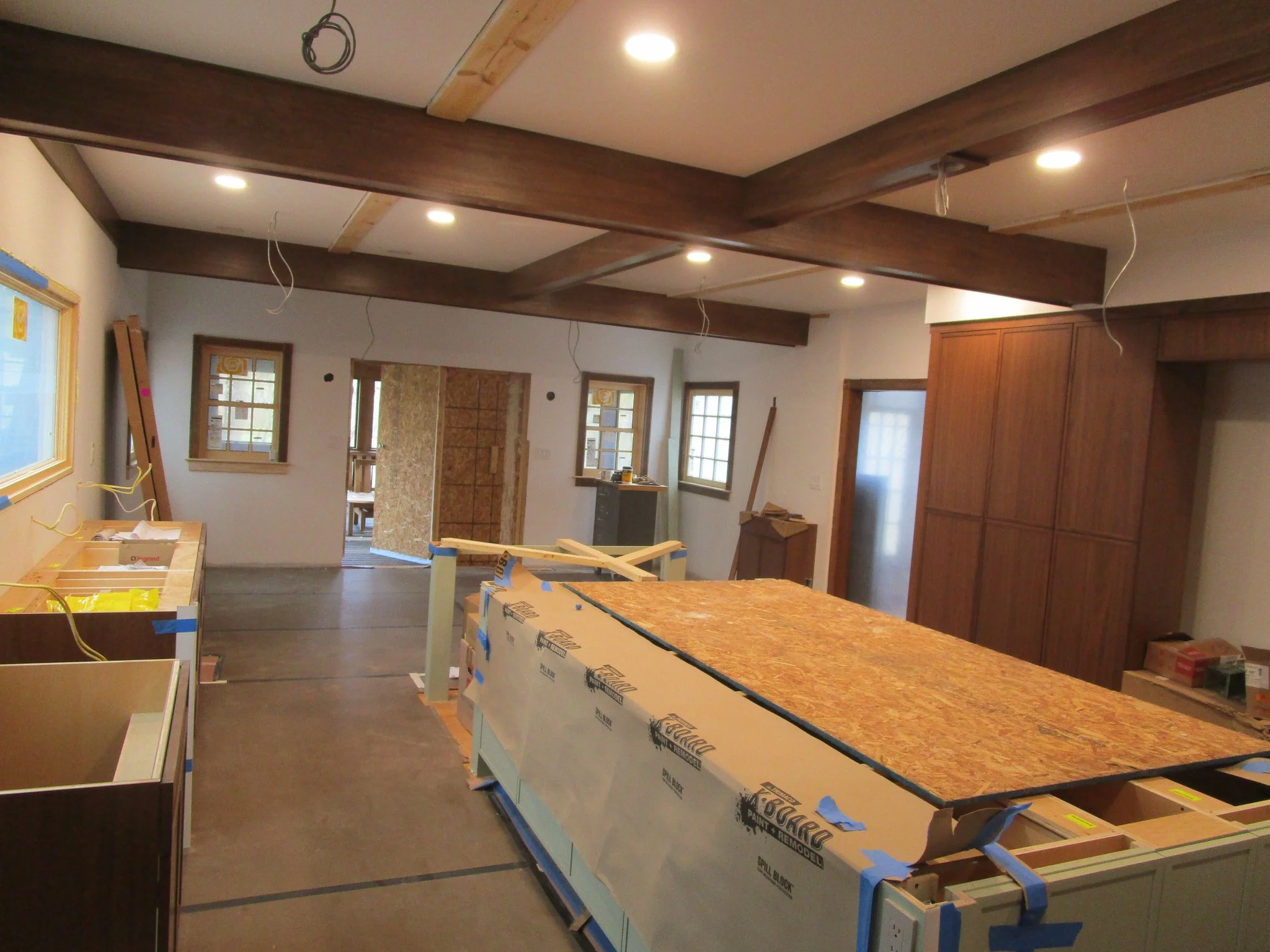 Meanwhile, in the kitchen, cabinetry is being installed.