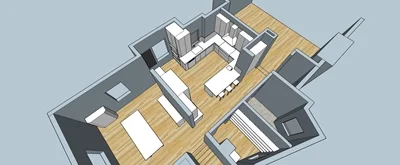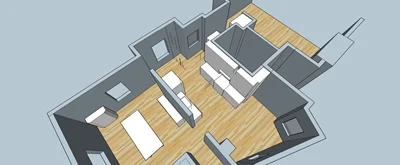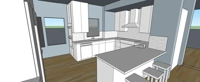 This model shows a bird’s eye view of the existing kitchen.
