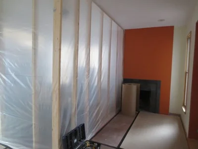 Dust protection walls have been installed to protect furniture and belongings,