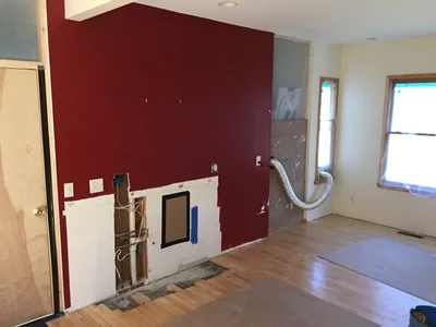 Since our clients will remain in the house during construction, we go the extra step to make the disruption as minimal as possible. Not having a real kitchen and laundry room with young kids is intense, so we created this temporary kitchen and laundry area within the existing dining room. This is what our client said "I just wanted to tell you how incredible our temp kitchen is -- Brian and Zack really made a fantastic, highly functional space for us. We're so pleased!"
