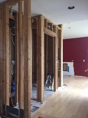 This pictures shows framing for the new powder room and pantry room doors.